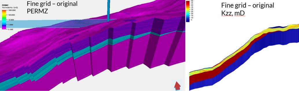 - During property upscaling, flow-direction biasing ensures permeability tensors retain their anisotropy.