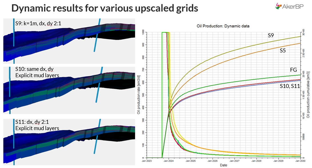 Aker BP sought to test whether maintaining these small-scale heterogeneities in the model would lead to measurable differences in flow response during simulation for a point reservoir. The special concern is forecasted production profiles.