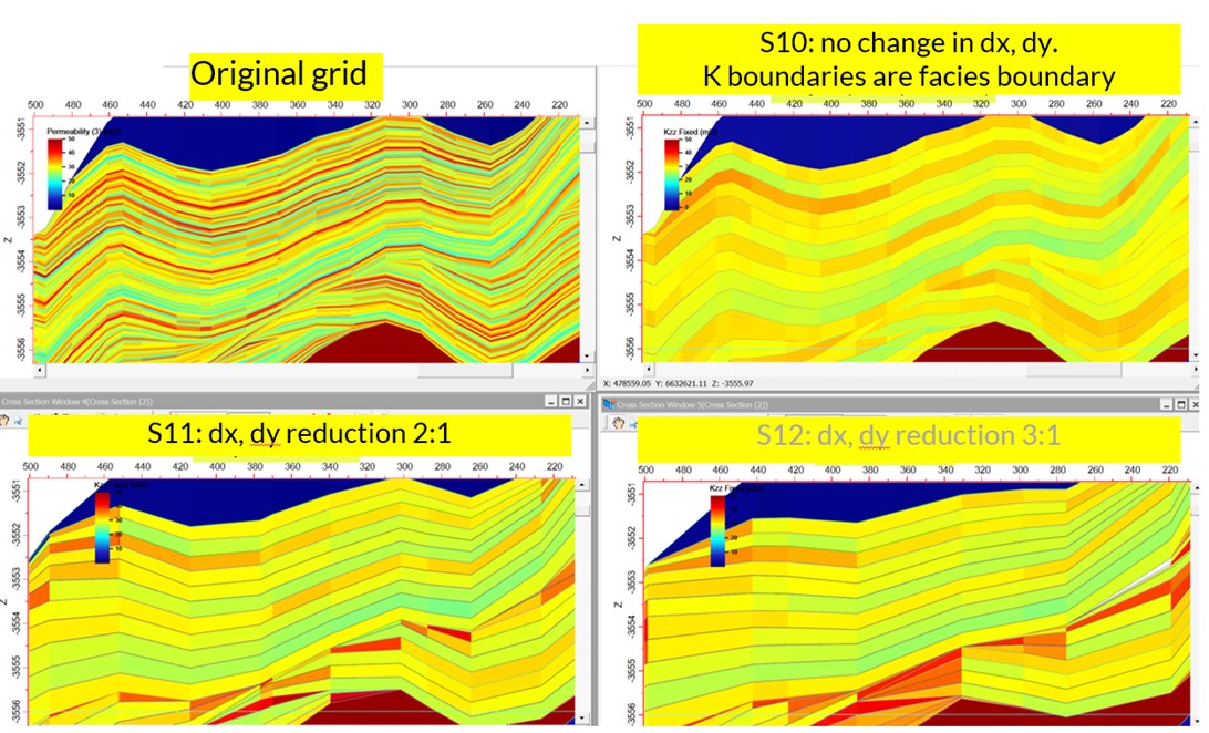 - S10–S13: rule-based upscaled grids that preserved thin mud layers explicitly during upscaling.